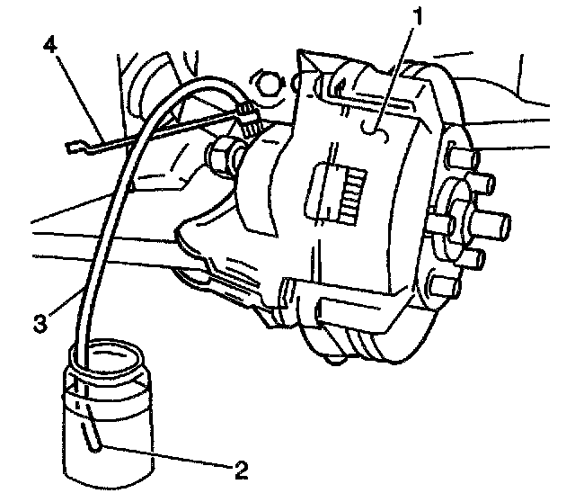 12.1. Attach a clear plastic bleeder hose (3) to the bleeder valve at the wheel.