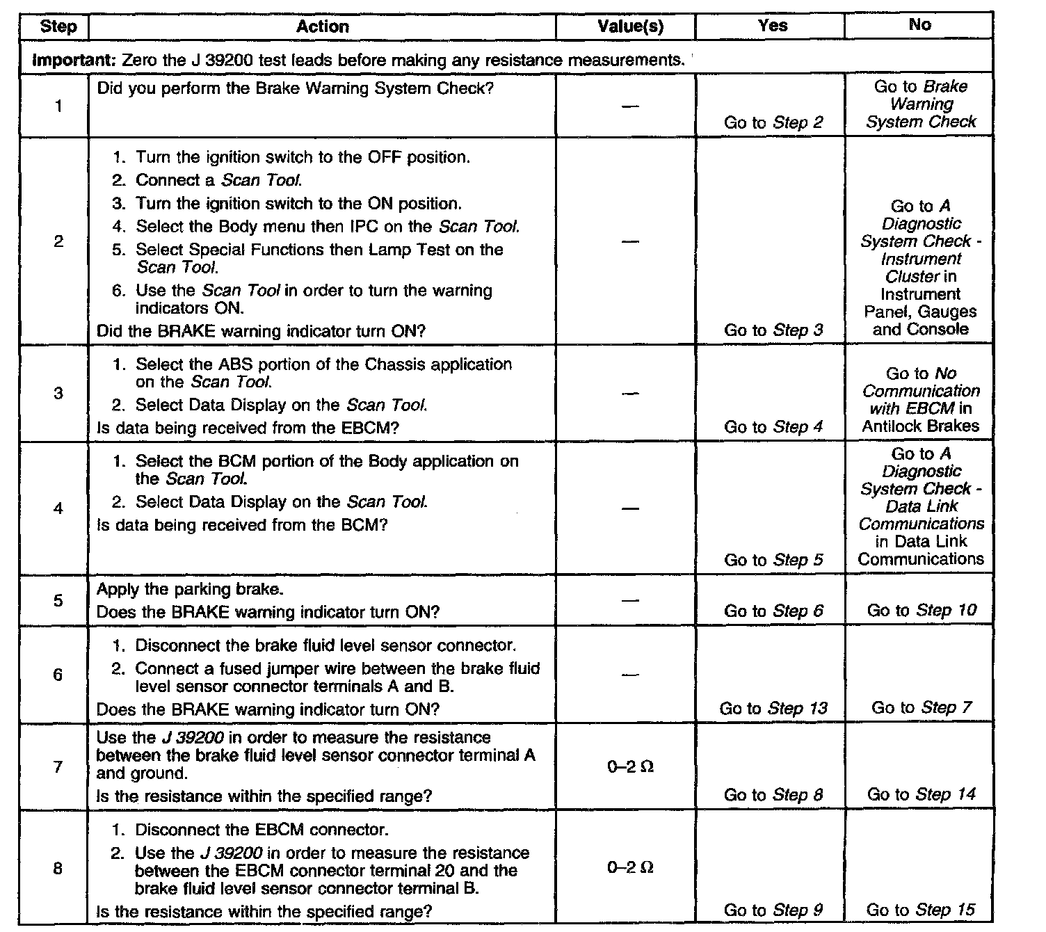 8. This test checks for an open or high resistance in the brake fluid level sensor input circuit.