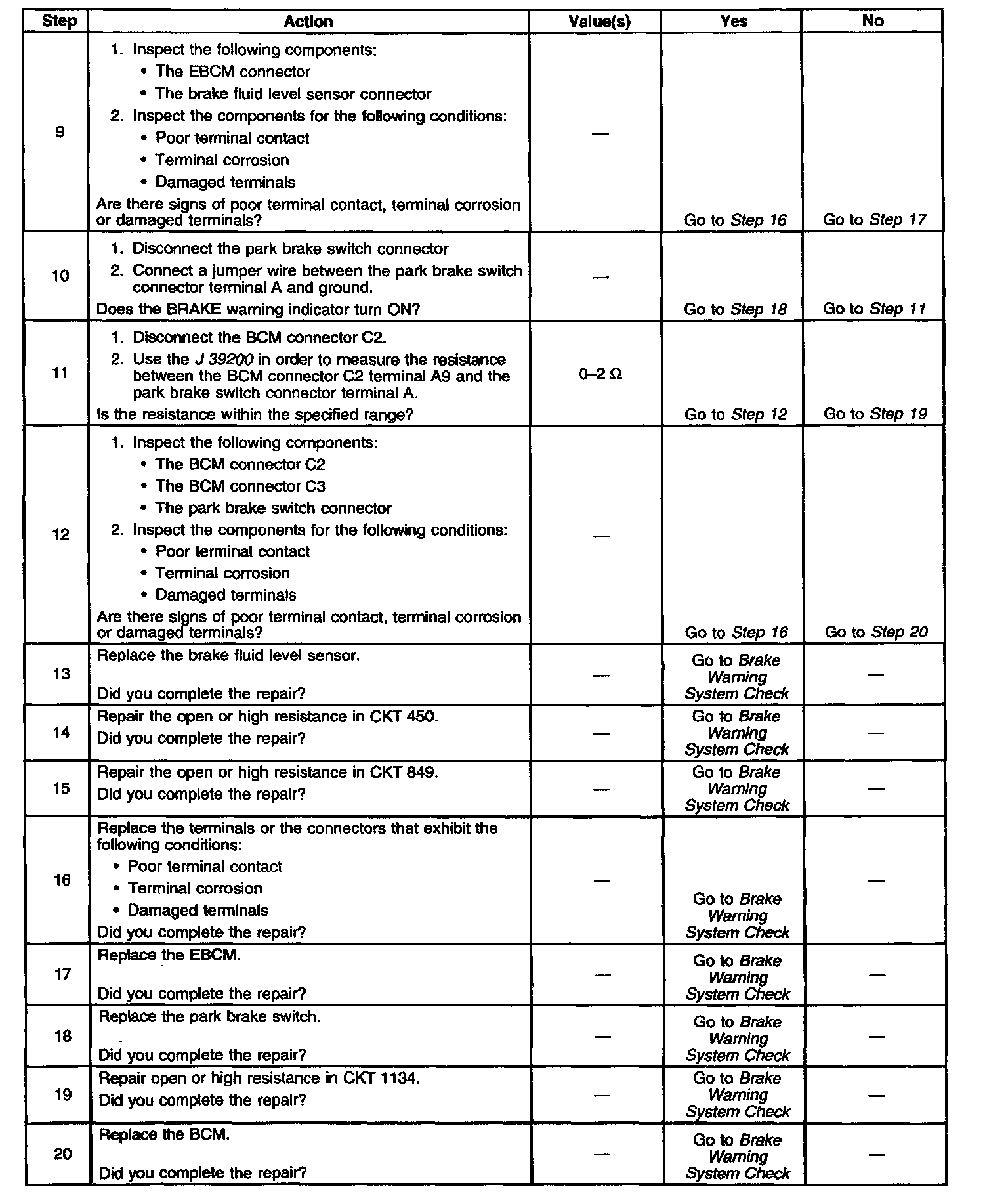 11. This test checks for an open or high resistance in the park brake switch input circuit.