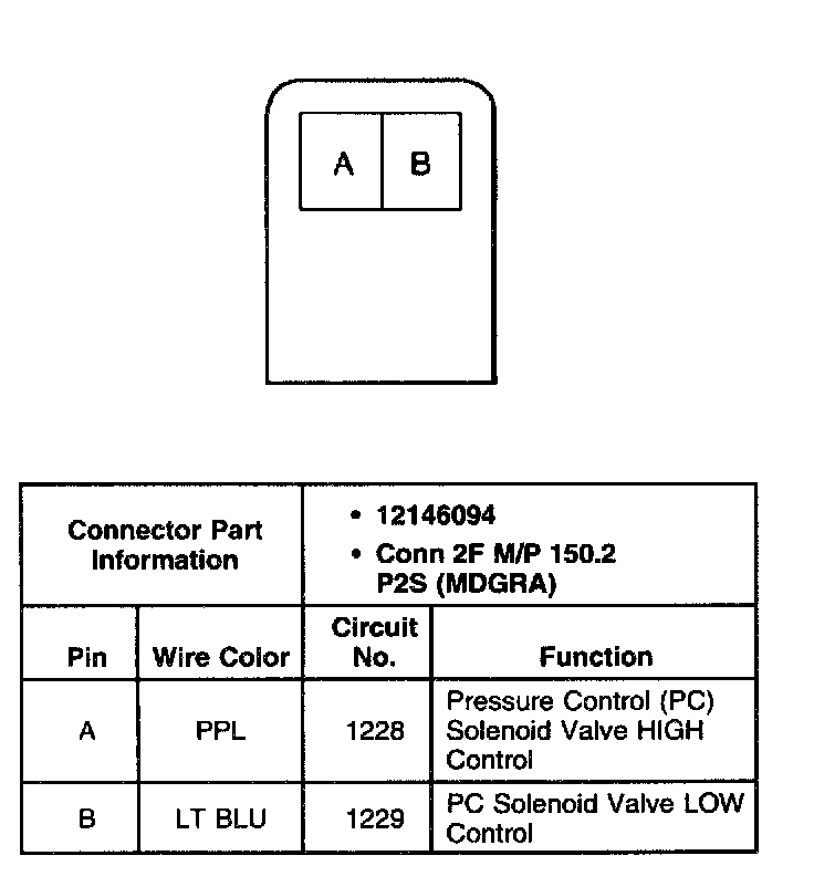Pressure Control Solenoid Valve Connector, Wiring Harness Side