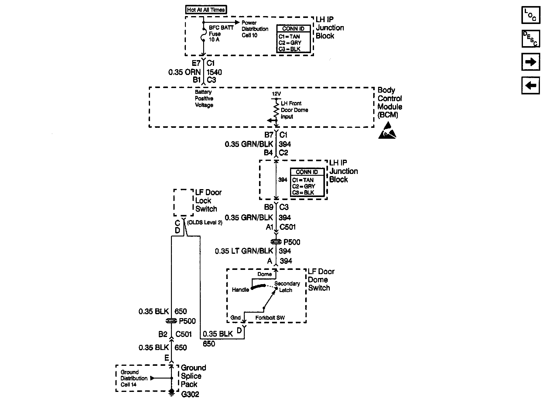 Body Control Module Schematics: Rear Door Jamb Switch, Front Door Dome Switch, RF Door Lock Switch: