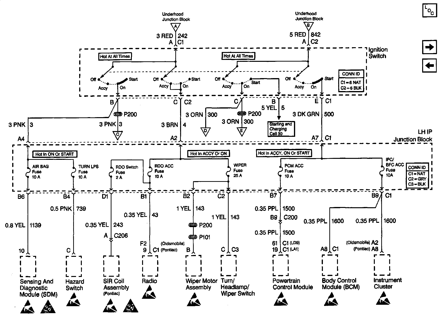 Power Distribution Schematics: AIR BAG, TURN LPS, RDO ACC, WIPER, PCM ACC And IPC/BFC ACC Fuses: