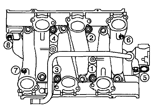 The torque specification is a 2-step process; tighten the vertical lower intake manifold bolts (the four middle ones) to 7 Nm (62 lb in). Tighten the diagonal lower intake manifold bolts (two on each end) to 7 Nm (62 lb in). Tighten the vertical lower intake manifold bolts (the four middle ones) to 13 Nm (115 lb in). Tighten the diagonal lower intake manifold bolts (two on each end) to 25 Nm (18 lb ft).