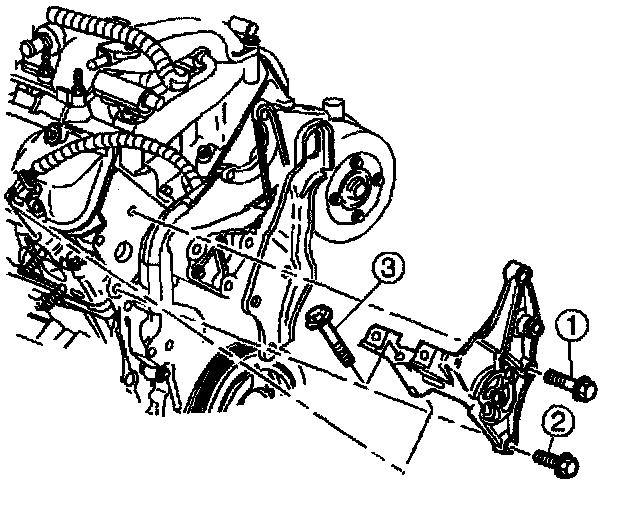 Remove the generator bracket bolts (1 - 3).