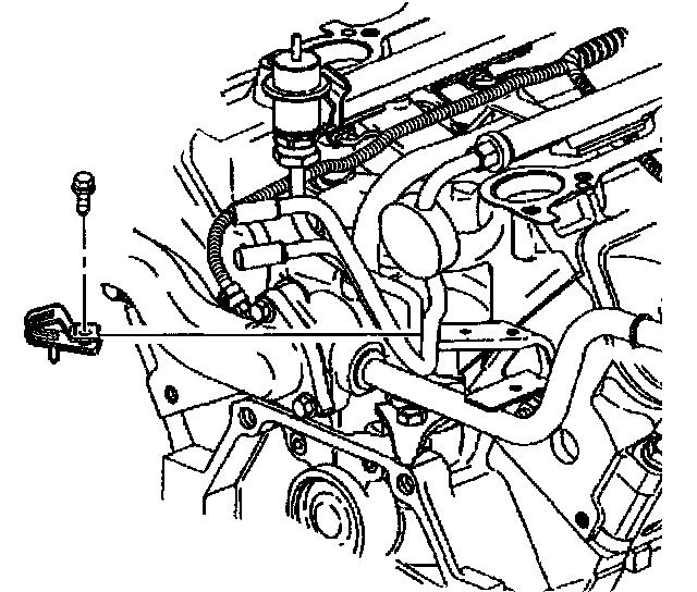1. Remove the fuel feed and return pipe retaining clip bolt.