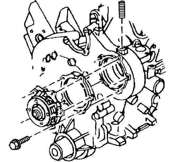 6. Remove the coolant pump attaching bolts.