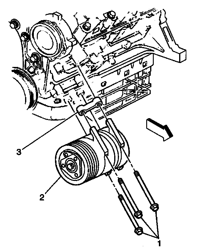 8. Remove the compressor attaching bolts (1).