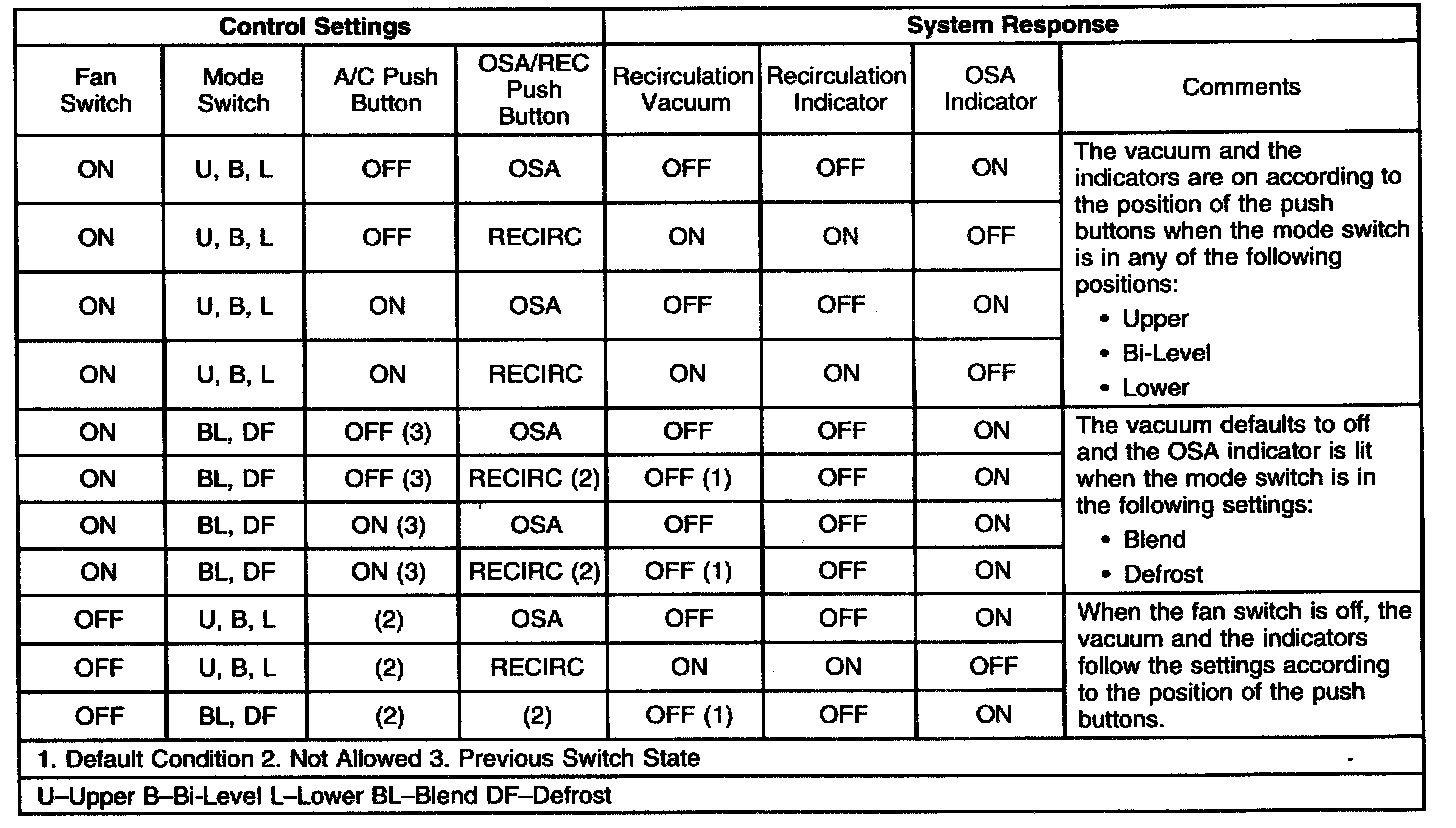 1. Operate the blower motor at all speeds with the mode lever in any position, and engage the compressor clutch. This will indicate that the electrical circuits and the vacuum circuits are functioning properly.