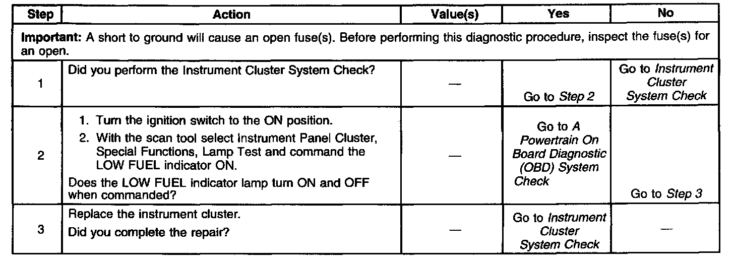 LOW FUEL Warning Not Operating Properly