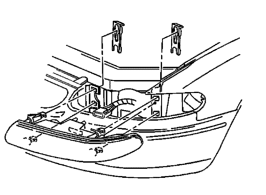 8. Position the headlamp mounting tabs to the slots in the upper fascia support and the fender reinforcement.
