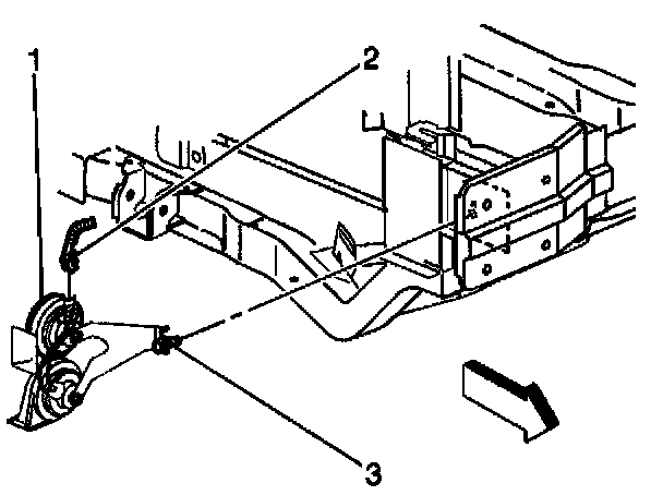 2. Remove the horn retaining nut (3) from the front impact bar.