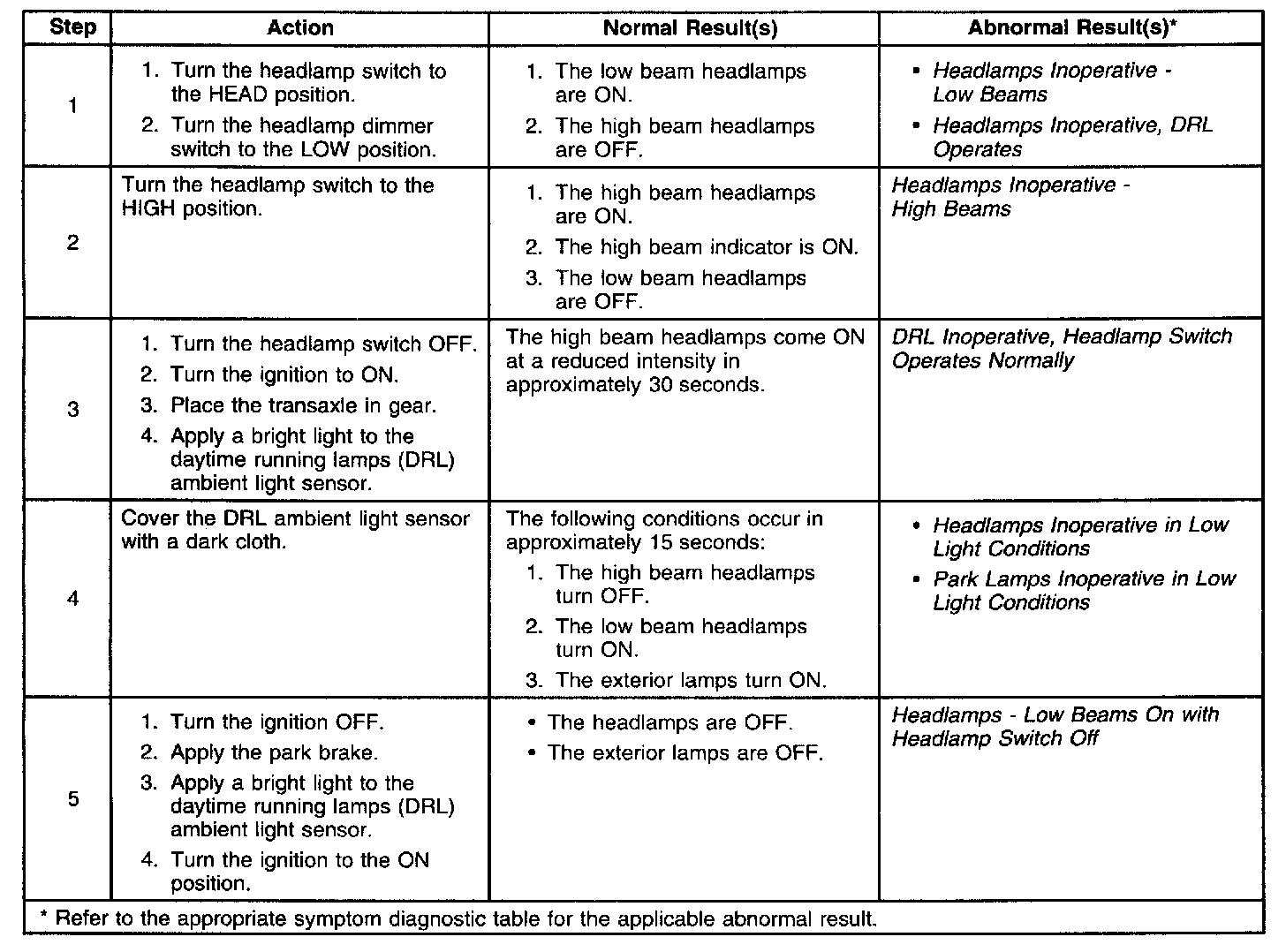 System Check - Daytime Running Lights (DRL)