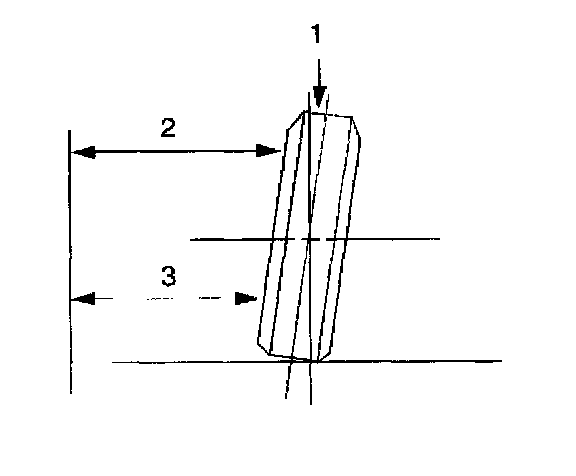 Camber is the tilting of the front wheels from the vertical when viewed from the front of the vehicle. When the wheels tilt outward at the top, the camber is positive (+). When the wheels tilt inward at the top, the camber is negative (-). The amount of tilt is the measurement in degrees from the vertical (1). Camber setting influences directional control and tire wear.