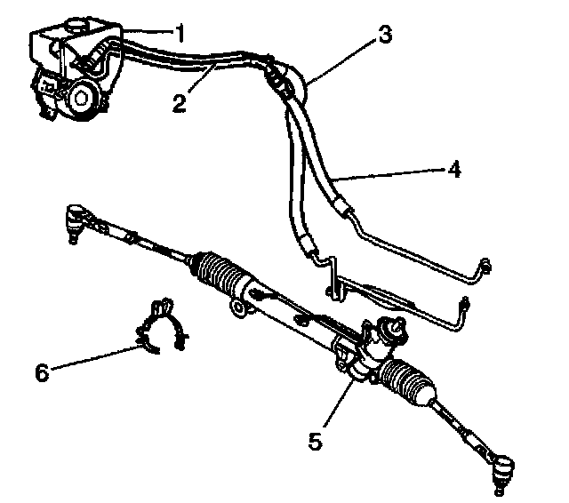 1. Install the pressure hose (4) to the power steering gear (5).
