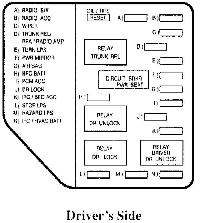 4. Press and release the RESET button again. The CHANGE OIL indicator will turn OFF and the CHECK TIRE PRESSURE (Pontiac) or LOW TIRE PRESSURE (Oldsmobile) indicator will start flashing.