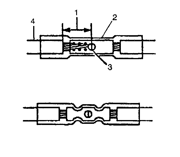 9. Insert the wires into the splice sleeve until the wire hits the barrel stop. The splice sleeve has a stop in the middle of the barrel in order to prevent the wire from passing through the splice (3).