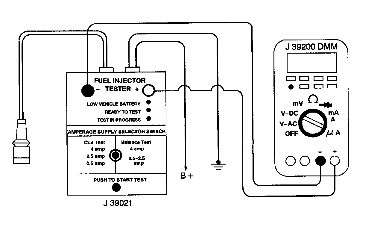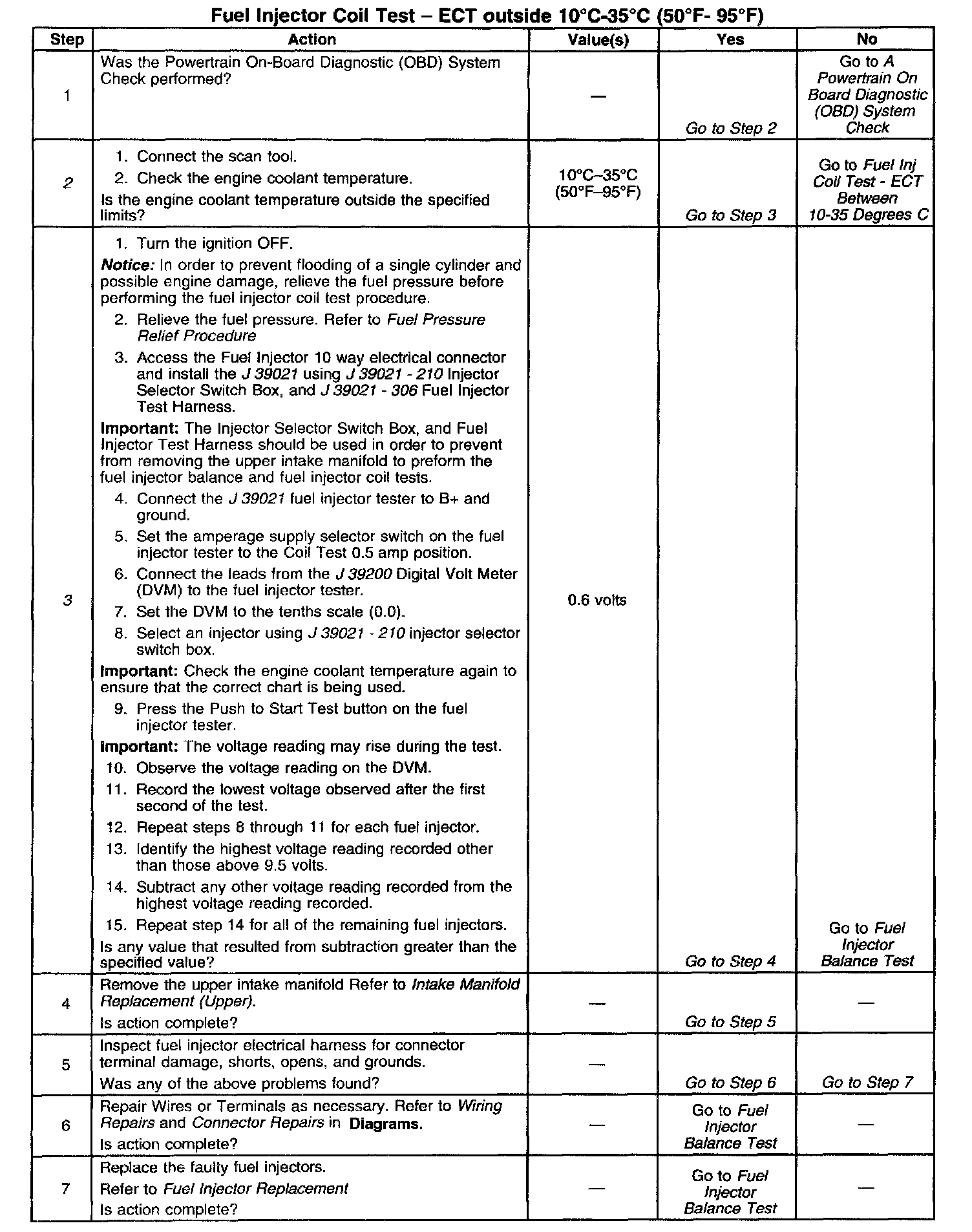 2. The engine coolant temperature affects the ability of the fuel injector tester to detect a faulty fuel injector. If the engine coolant temperature is between 10°C-35°C (50°-95°F), Component Tests and General Diagnostics