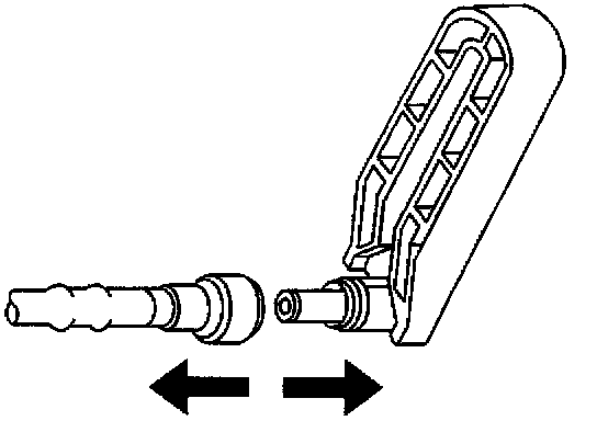 4. Choose the correct tool from J 37088-A Tool Set for the size of the fitting. Insert the tool into the female connector, then push inward to release the locking tabs.