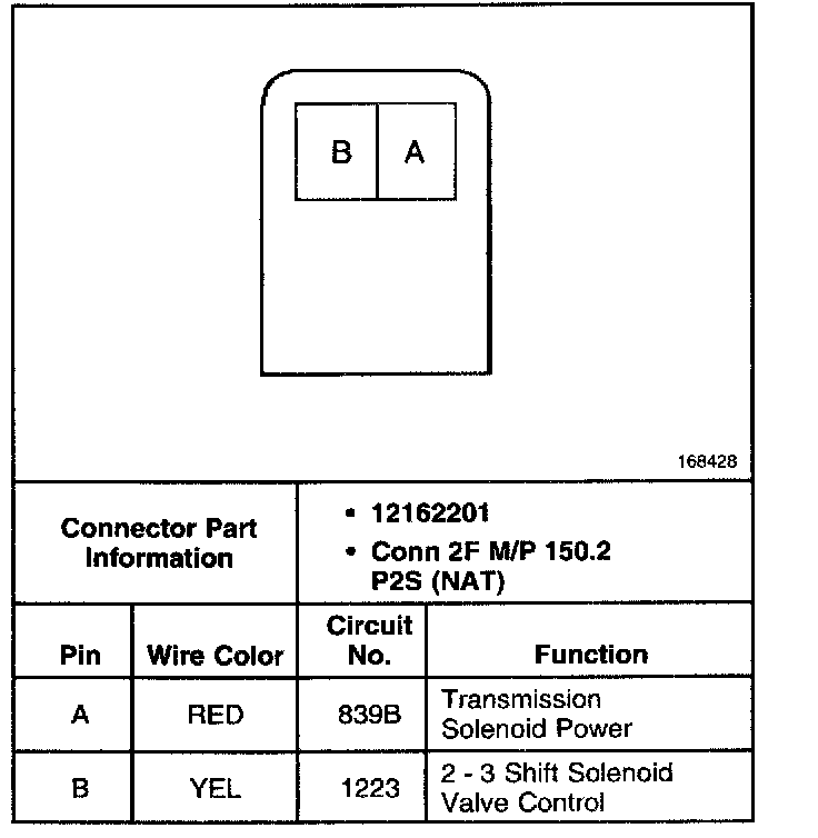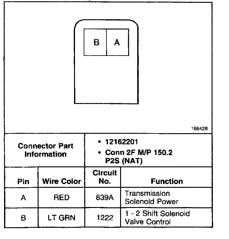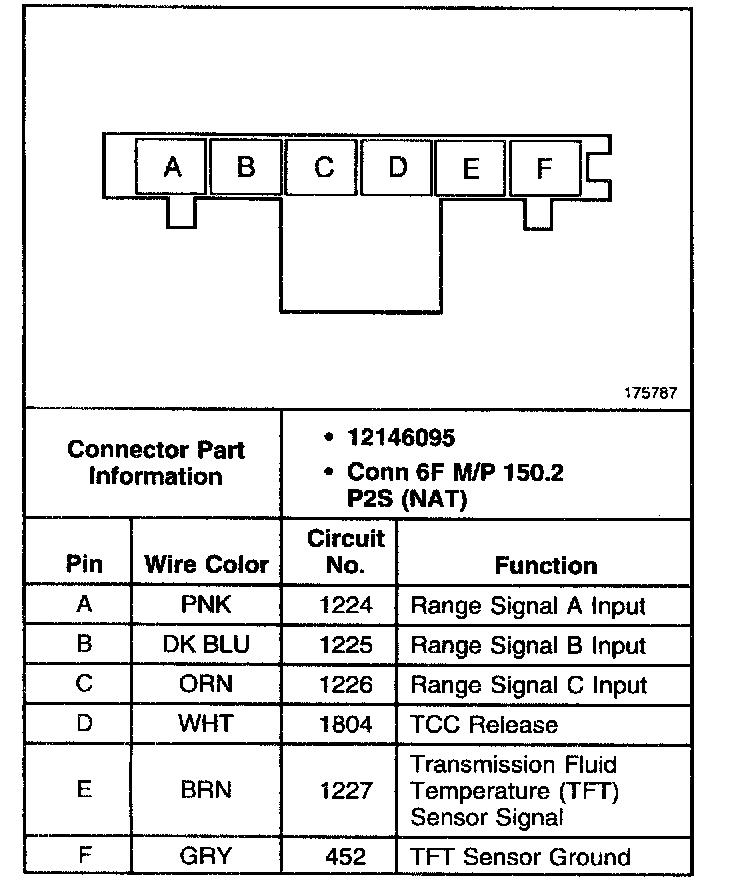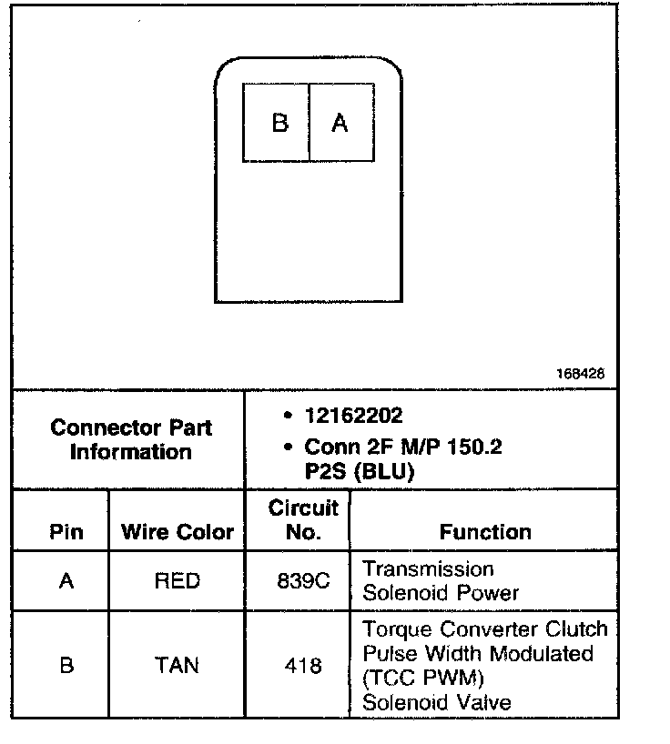 Torque Converter Clutch Pulse Width Modulated (TCC PWM) Solenoid Valve Connector, Wiring Harness Side