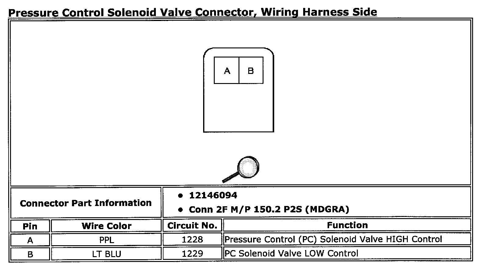 Pressure Control Solenoid Valve Connector, Wiring Harness Side
