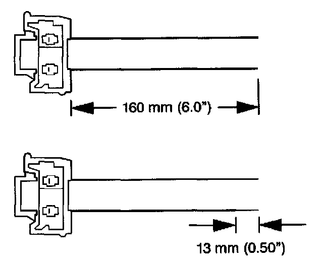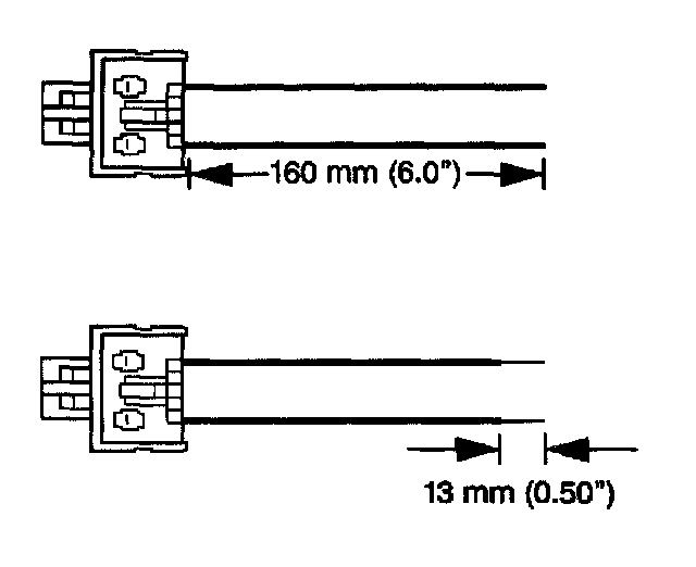 7. Strip 13 mm (0.5 in) of insulation from each of the connector wire leads.