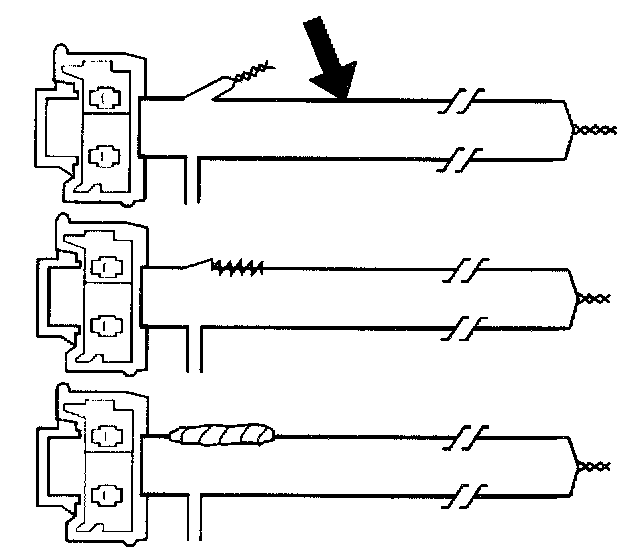 8. Cut two 4.6 M (15 ft) deployment wires from a 0.8 Sq. mm (18 gage) or thicker multi-strand wire. Use these wires to fabricate the driver deployment harness.