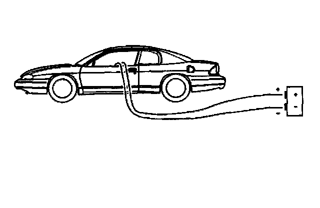 34. Place a power source, 12V minimum/2A minimum (i.e., a vehicle battery) near the shorted end of the harness.
