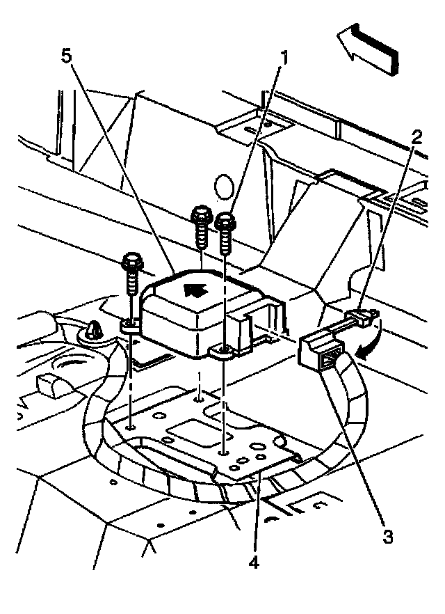 2. Install the Inflatable Restraint Sensing and Diagnostic Module (SDM) mounting fasteners (1).