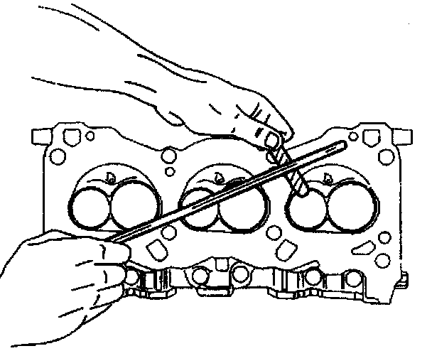 Inspect the cylinder head mating surfaces for flatness. Recondition the cylinder head mating surface, if necessary, by milling. Replace the cylinder head if you must remove more than 0.25 mm (0.010 inch).