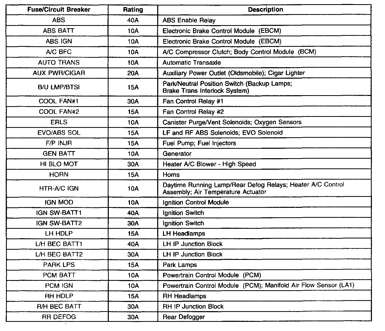 Engine Compartment Fuse Block Identification