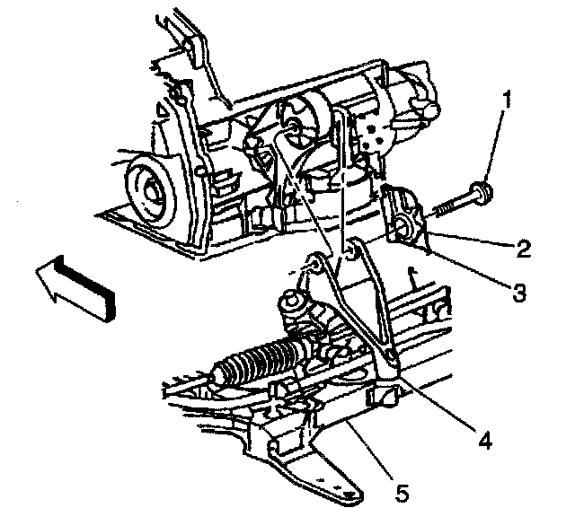 5. Install the bolt (1) to the rear transmission mount (4).