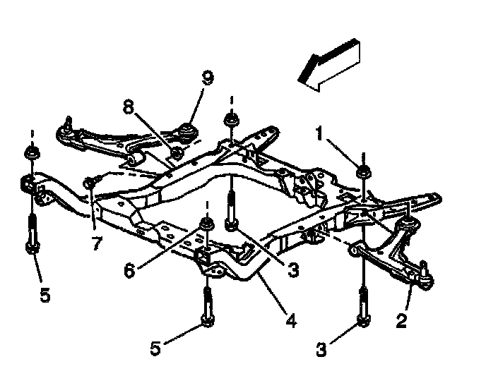 8. Support the rear of the crossmember (4) with an adjustable jack stand.