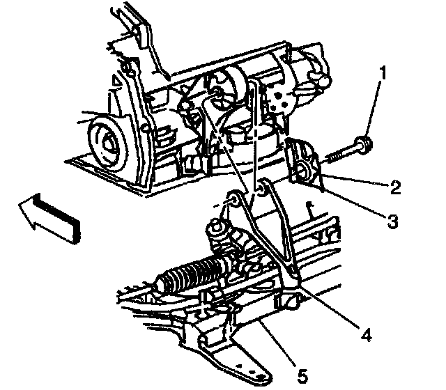10. Loosen the front bolts (5) on the crossmember (4).