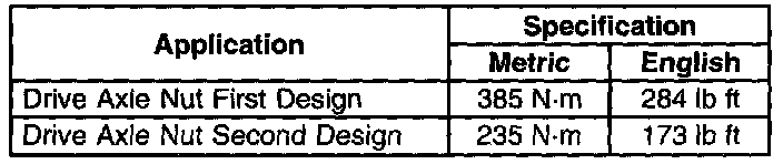 A new solid drive axle nut, P/N 10289657, was installed on vehicles after the start of production. It was a different torque specification from the first design axle nut, P/N 22652364.