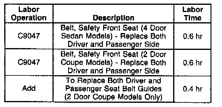 In addition, on TWO DOOR COUPE models, both (driver and passenger) front seat belt guides (attached to the headrests) must be replaced when new seat belt assemblies are being installed.