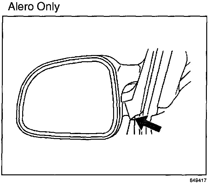 The mirror may not have been installed properly to the door surface causing a gap at the belt line. Refer to the illustration.