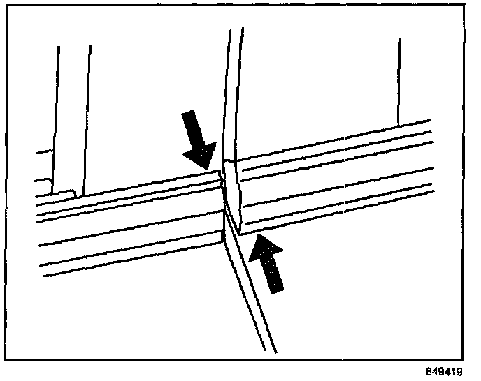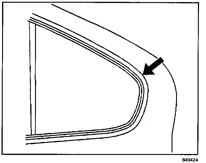 Inspect the A" pillar for gaps to the windshield. Refer to the illustration.