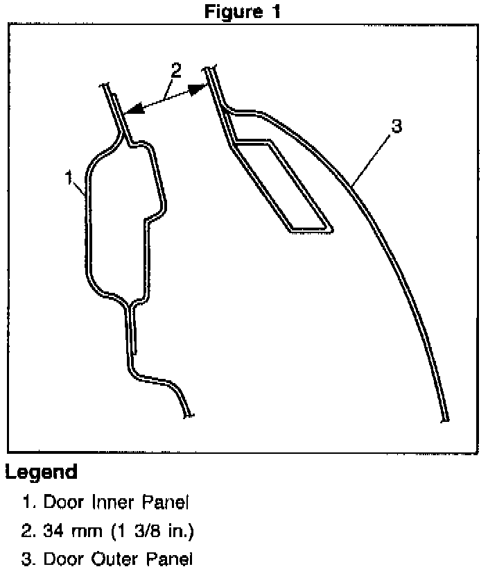1. Check the dimension between the inner and outer door panel opening. That dimension should be 34 mm (1-3/8 in.). See Figure 1. When necessary, widen the opening to 34 mm (1-3/8 in.).