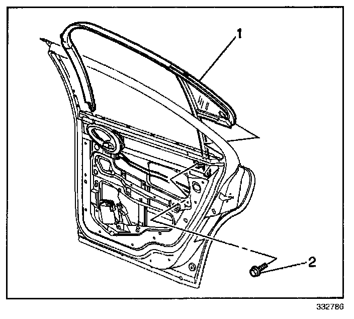 11. Remove the stationary window (1). Roll the window forward and remove the window with the run channel.