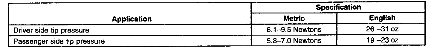 If the force required is not within the specifications given below, replace the wiper arm assembly.