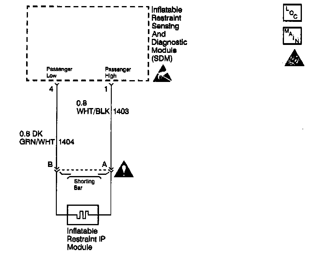 When you first turn the ignition switch to the RUN position, the Inflatable Restraint Sensing and Diagnostic Module (SDM) performs tests in order to diagnose critical malfunctions within the module. Next the SDM measures the ignition positive voltage in order to ensure that the voltage is within the respective normal voltage range. Then the SDM proceeds with the deployment loop continuity test. During the deployment loop continuity test, the SDM measures the voltage difference between the PASSENGER HIGH and the PASSENGER LOW.