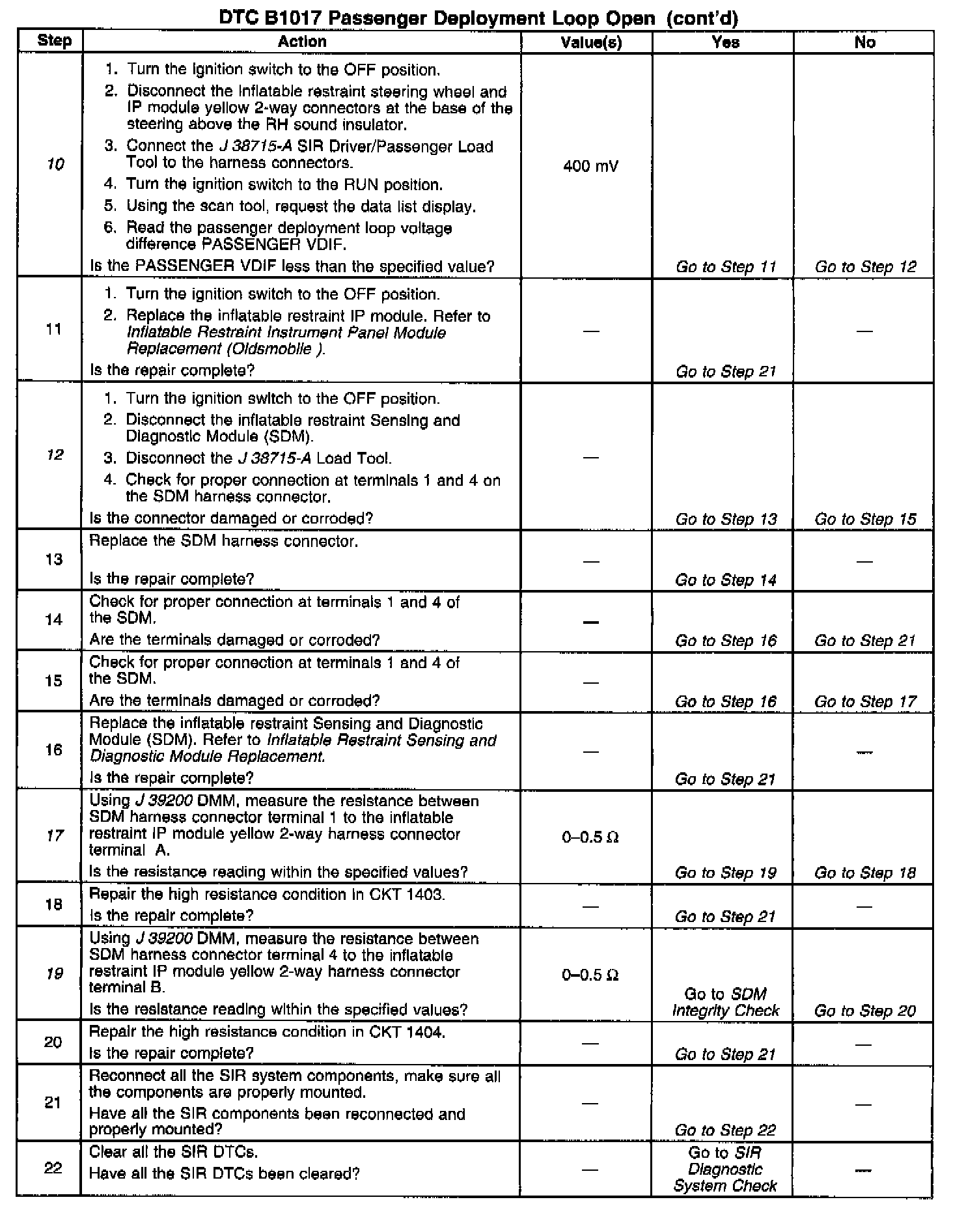 When measurements are requested in this table, use J 39200 Digital Multimeter with the correct terminal adapter from J 35616-A Connector Test Adapter Kit. When a check for proper connection is requested, refer to Intermittents and Poor Connections. When a wire, connector or terminal repair is requested, use J 38125-B Terminal Repair Kit and refer to Wiring Repair.