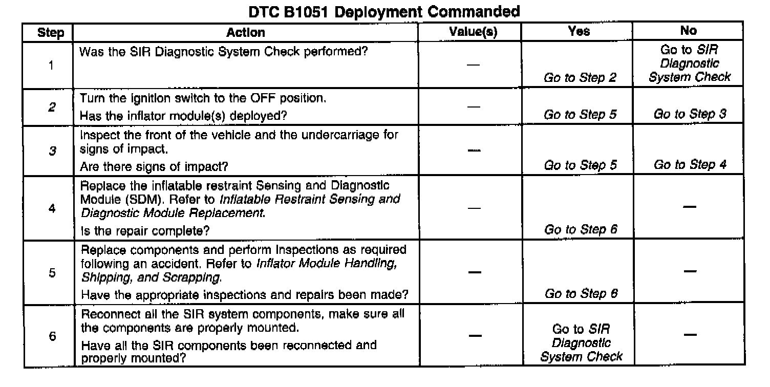 2. If the inflator module(s) has not deployed, DTC B1051 may have set falsely.