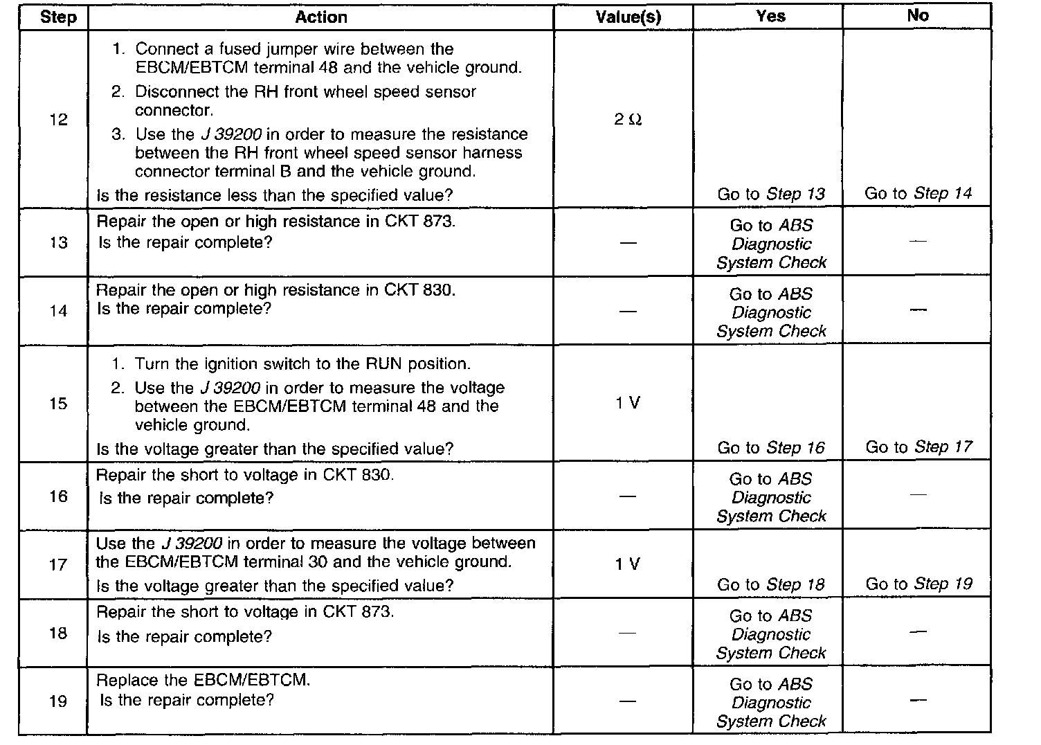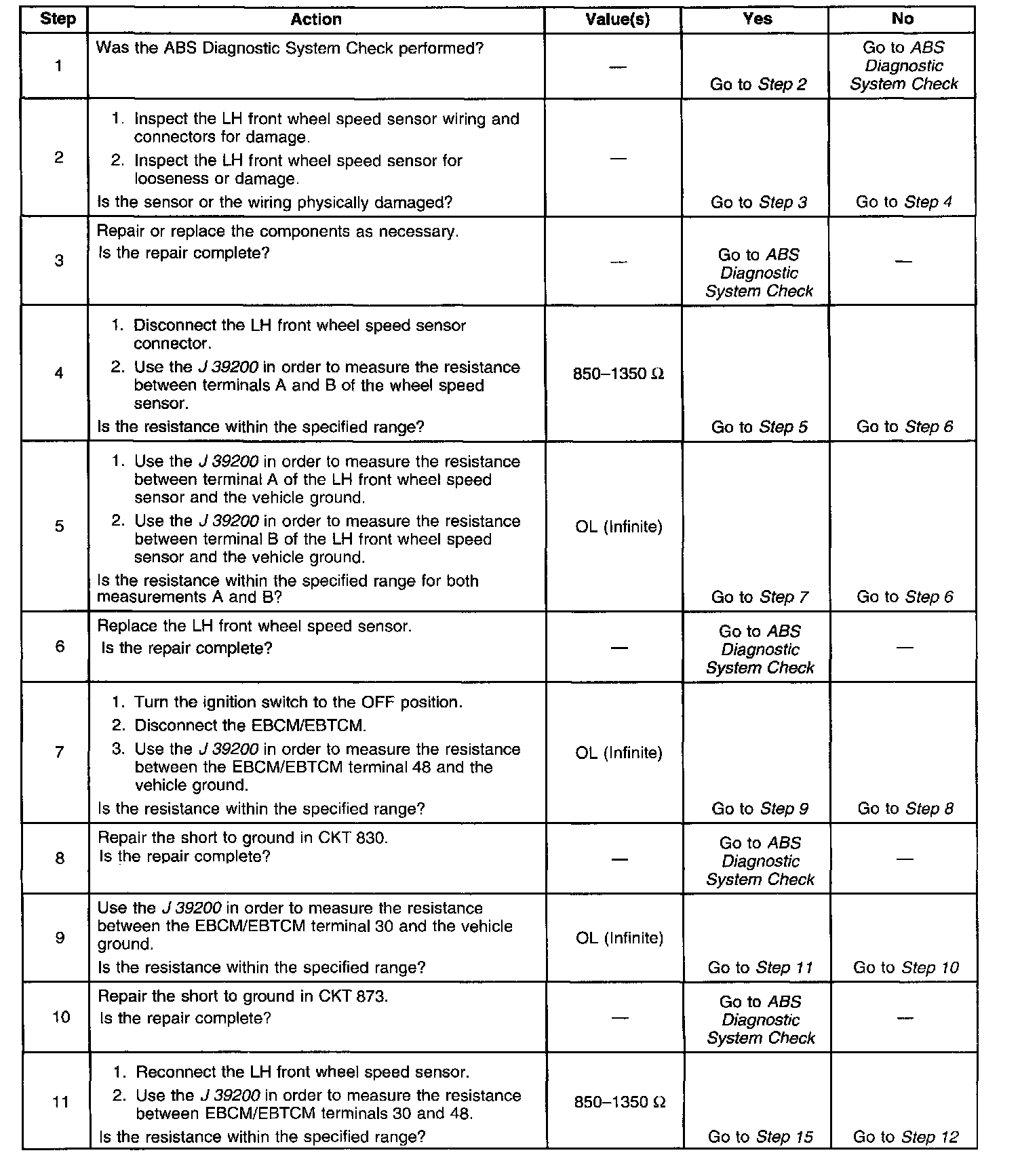 ^ A short between the two wheel speed sensor circuits in the wiring harness between the speed sensor and the EBCM/EBTCM.