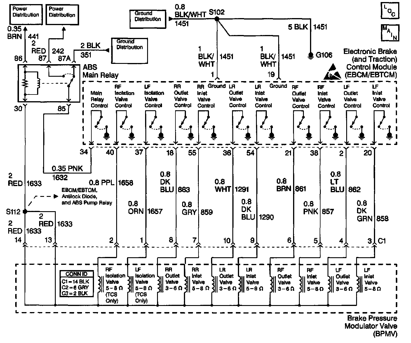 Voltage is applied to the normally open inlet valves whenever the main relay is energized.