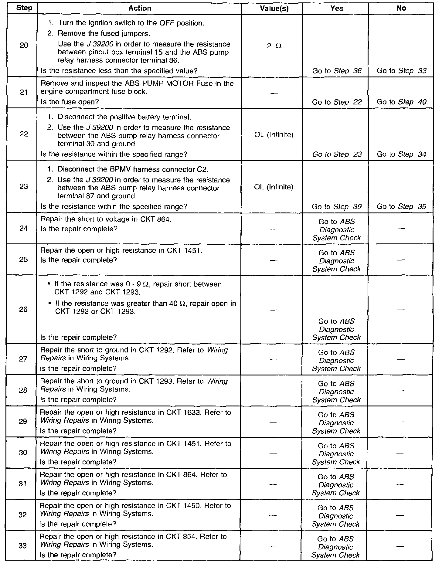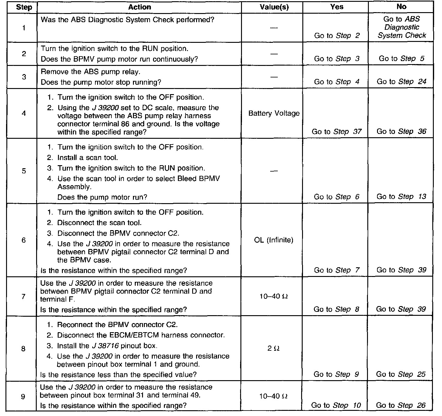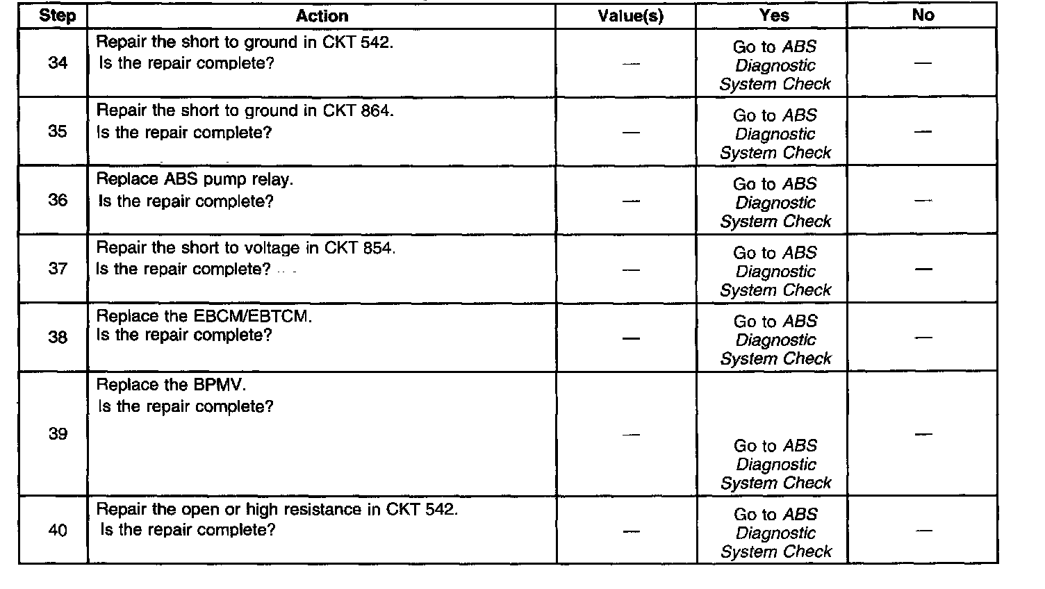 ^ An ABS pump relay failed open, engaged, or point with high resistance.