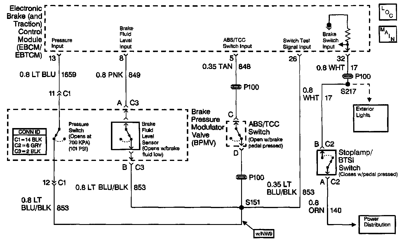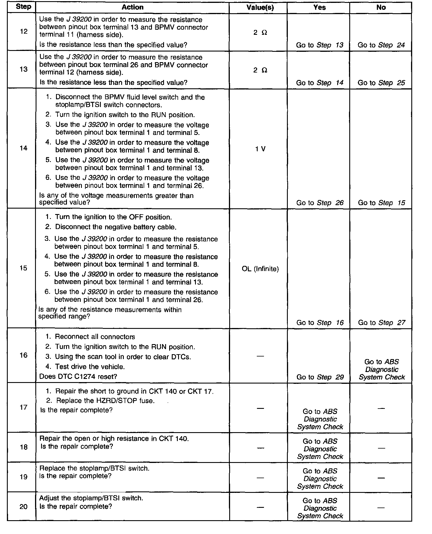 DTC C1274 sets when the EBTCM detects an open or short to ground in the BPMV pressure switch circuitry.