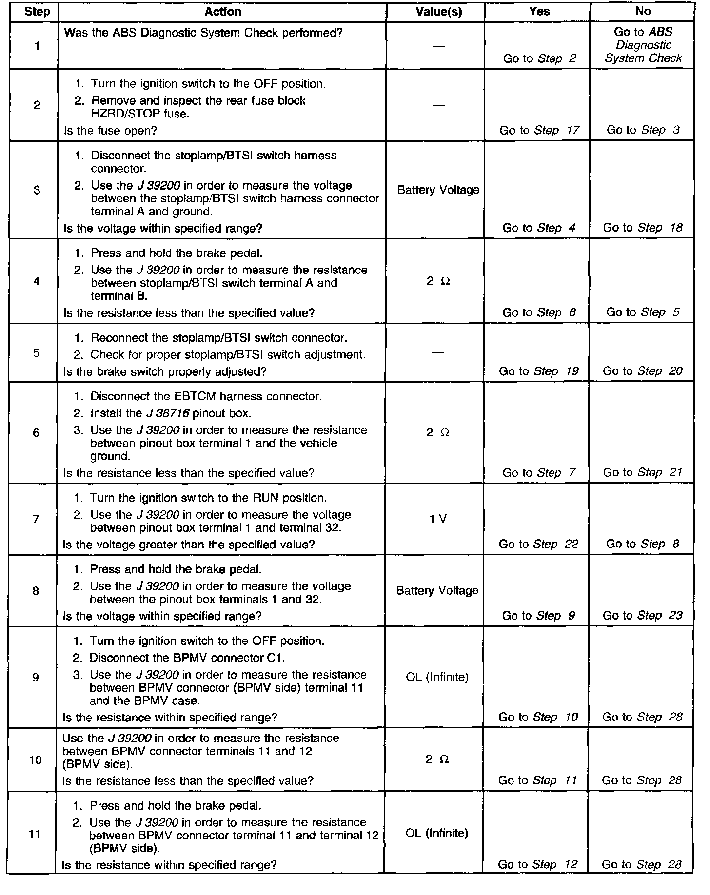 - The ABS pump motor pressure switch circuit is open or shorted to voltage