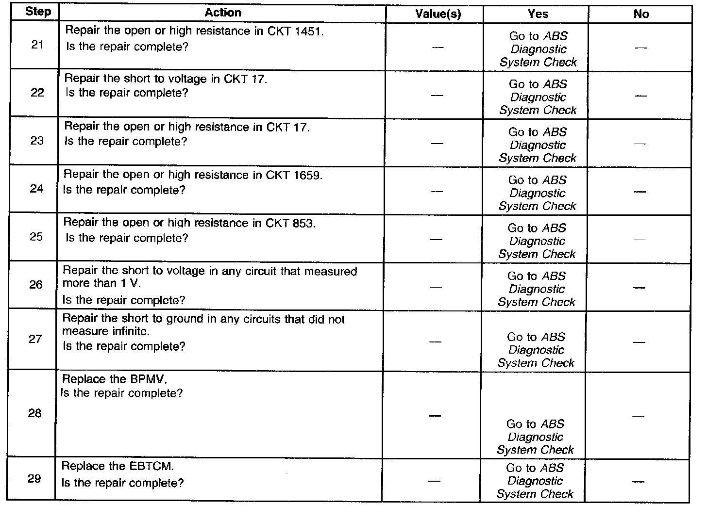 ^ Conditions for the malfunction are no longer present. Use the scan tool clear DTCs function.