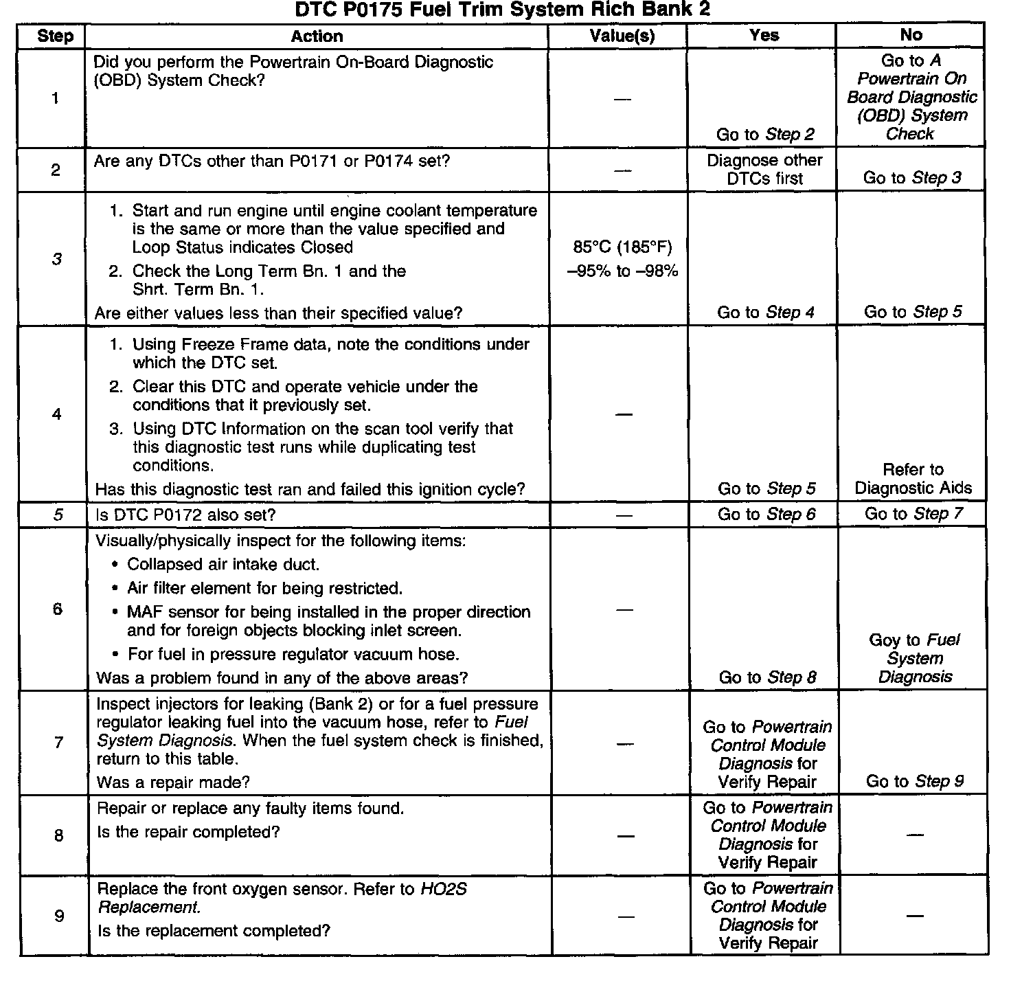 5. If DTC P0172 is also set then both banks are operating rich. Inspect items that would cause both banks to operate rich.